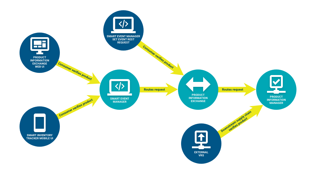 - Managing product verification requests in real time across any company in the supply chain that uses a Verification Router Service (VRS), without a need for preexisting relationships between the requesting and responding parties.