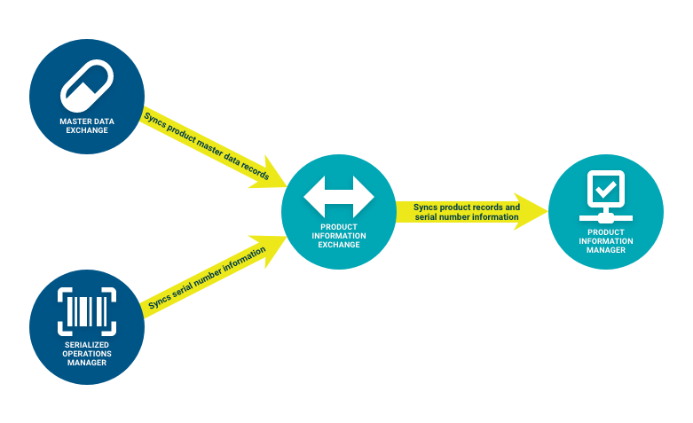 Pharmaceutical Manufacturers and Repackagers (i.e. Producers on the TraceLink Network) can sync their product master data from Master Data Exchange and serial number information from Serialized Operations Manager to Product Information Manager, which allows members of the downstream supply chain to verify serial numbers for those products and download that master data.