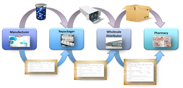 As product moves through the pharmaceutical supply chain from manufacturer to wholesaler to pharmacy, TraceLink maintains a transaction history showing each change of ownership.